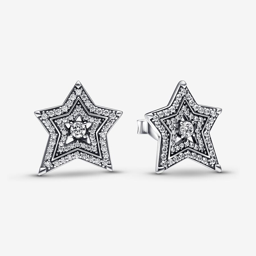 Our Celestial Asymmetric Star Stud Earrings will add a starry sparkle to any look. These statement earrings each feature an asymmetric star in polished sterling silver, carefully detailed by hand with rows of clear cubic zirconia pavé and a cut-out star containing a single stone which appears to float at the center. Inspired by the beauty of the night sky, add these pieces to your look or gift them as a reminder that organic, asymmetrical imperfection is beautiful – and to always reach for the stars.StoneCubic ZirconiaColourClearThemesNature and CelestialProduct TypeEarringsItem292415C01MetalSterling silverMaterialNo Other MaterialDimensionsDepth:1.7 mmHeight:15.7 mmWidth:14.7 mm