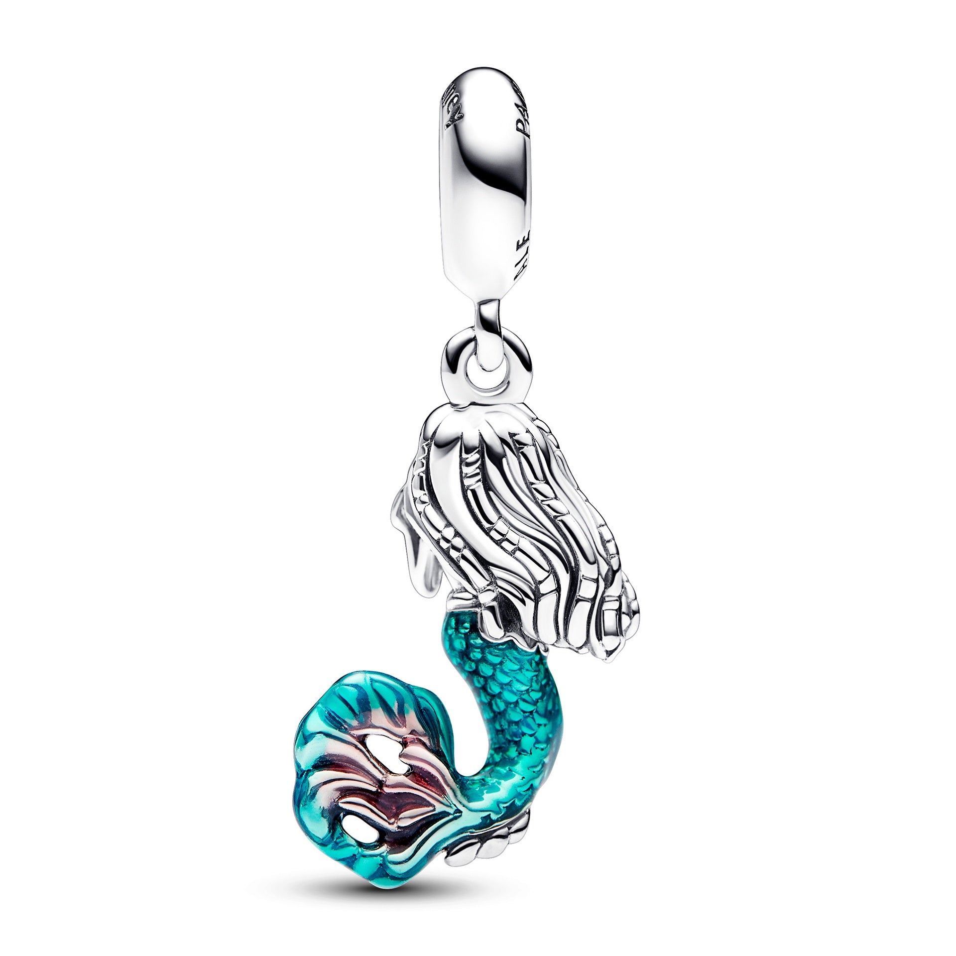 Journey beyond the sea with our Disney The Little Mermaid Ariel Dangle Charm, inspired by the new live-action film adaptation. Celebrate your free spirit and curious heart by adding this sterling silver charm to your collection. Ariel’s face and locs are brought to life with engraved details, and her mermaid tail shines with hand-applied teal and cerise enamel. A sparkling aurora borealis clear cubic zirconia rests atop the bail, like the sun reflecting on the ocean waves. Keep Ariel by your side as a reminder to follow your heart where adventure leads.