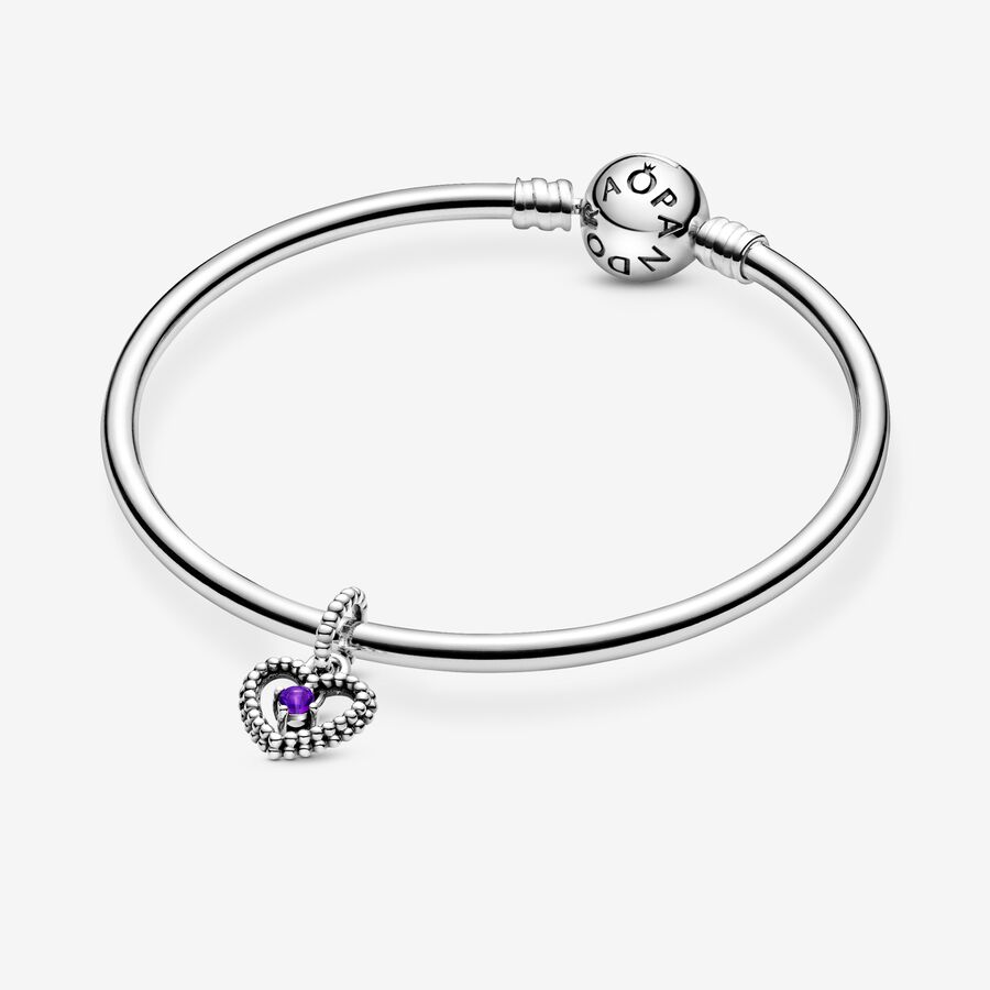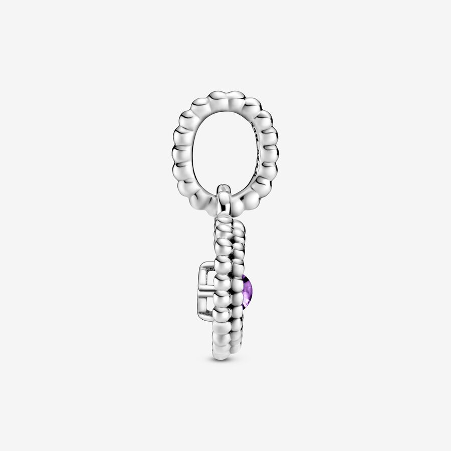 Coloring with crayons or fields of lavender? All that you are and all you love, captured in color. Inspired by the beaded designs of Purely Pandora, this heart-shaped dangle is hand-finished in sterling silver and features a claw-set buff top-cut purple man-made crystal in the center. Wear it on Pandora bracelets or necklaces to define and redefine your style by choosing colors that express who you are.