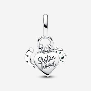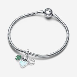 Keep luck close with the Four-leaf Clover, Heart and Horseshoe Triple Dangle Charm. This sterling silver dangle charm features three different symbols of good fortune including a four-leaf clover, a heart and a horseshoe. The heart is engraved with the word “Sisterhood”. The horseshoe sparkles with clear cubic zirconia, the heart glistens with a white lab-created opal and the clover features royal green crystals. Wear this Moments charm as a symbol of good luck and protection or gift it to someone you care about deeplyCompatible WithME/MomentsColourMulticolorThemesFamily and FriendsProduct TypeCharmsItem792755C01MetalSterling silverMaterialNo Other MaterialDimensionsDepth:3.1 mmHeight:12 mmWidth:14.8 mm