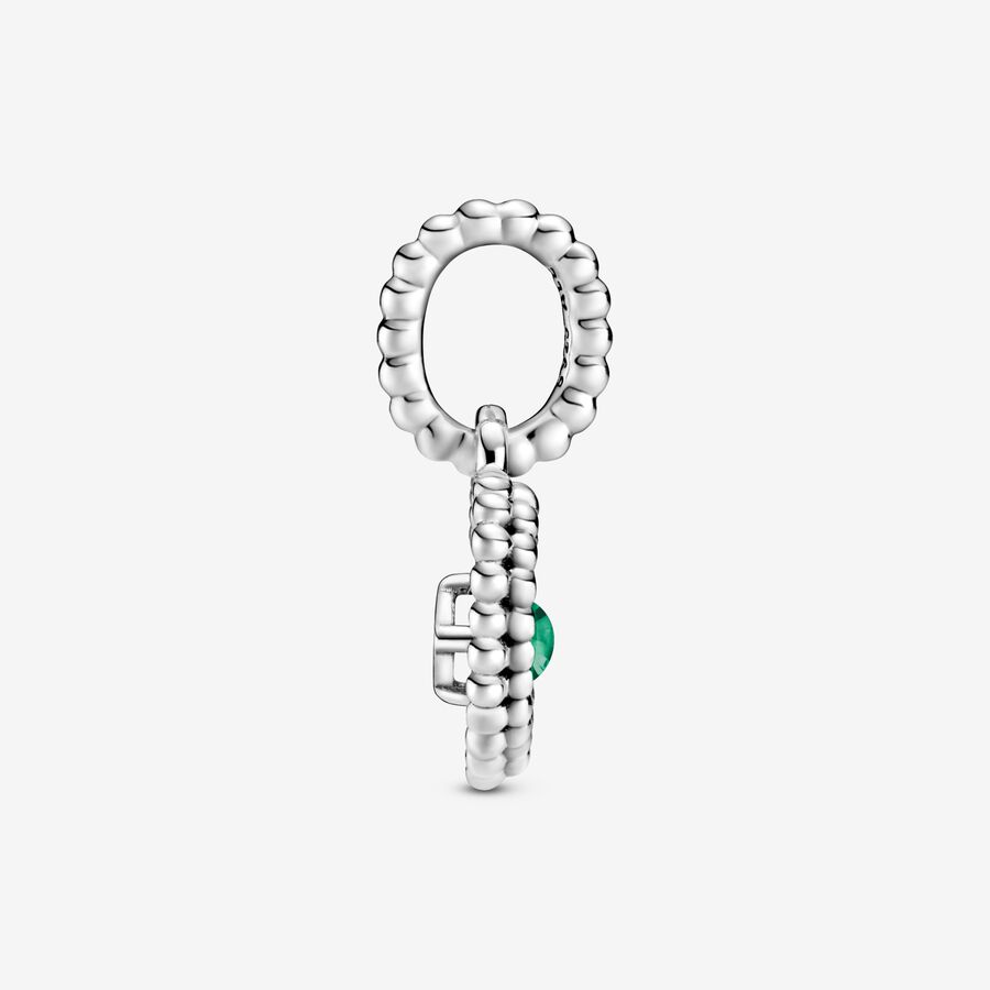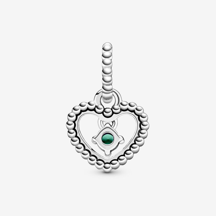 The color of the ocean after a storm or a road trip in Costa Rica? All that you are and all you love, captured in color. Inspired by the beaded designs of Purely Pandora, this heart-shaped dangle is hand-finished in sterling silver and features a claw-set buff top-cut rain forest green man-made crystal in the center. Wear it on Pandora bracelets or necklaces to define and redefine your style by choosing colors that express who you are.