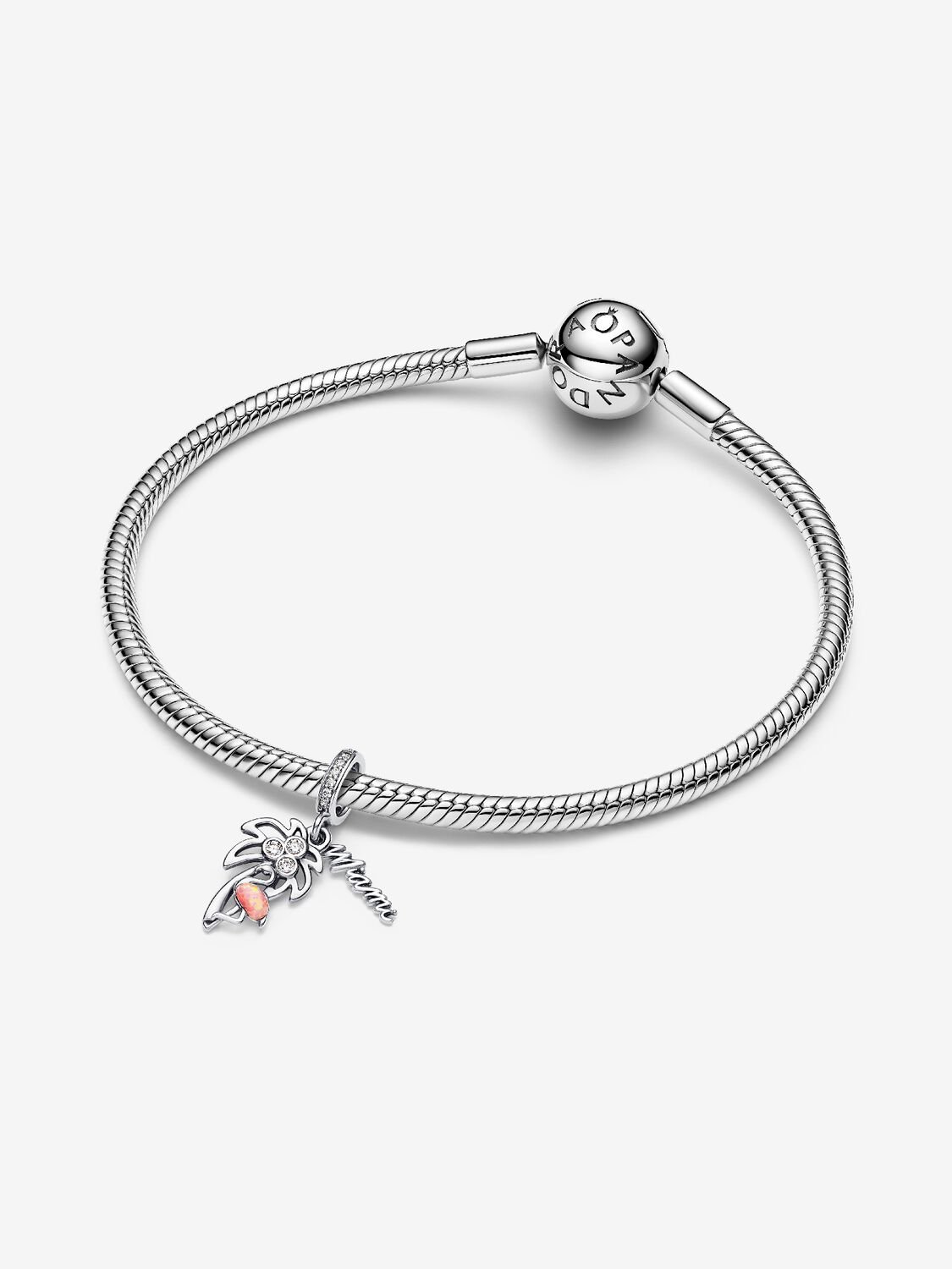 Celebrate the magic of Miami with a palm tree, flamingo, and handwritten ‘Miami’ script, all set with stones and enamel details.