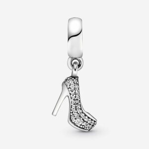 Put your best foot forward with this hand-finished sterling silver dangle charm, shaped as a stiletto shoe. Carefully pavé-set with cubic zirconia for a shimmering finish, it makes a glamorous accent piece on a Pandora Moments bracelet. It also doubles as a necklace pendant for when you really want to step out in style.