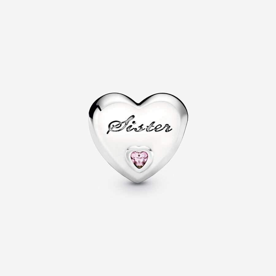 Pandora Moments charms are made for you to express the things you love – something, somewhere or someone. Made to celebrate the bond between siblings, our sterling silver family charm is shaped as a heart. Polished to a high shine, the simple yet meaningful style is trimmed with heart-shaped pink stones and the engraving “Sister.” We think it makes a meaningful gift to show the story you share.