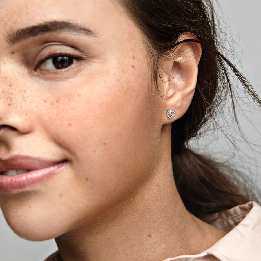 Sparkling Freehand Heart Stud Earrings