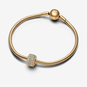 Shine on from every angle with a touch of sparkling pavé from our Moments collection. This 14k gold-plated charm is crafted from exactly 85 pavé-set round brilliant-cut clear cubic zirconia, making a bold addition to your collection of cubic zirconia charms. Elevate your everyday looks by adding this sparkling pavé charm to your favorite chain or bracelet.Compatible WithMomentsStoneCubic ZirconiaColourClearThemesSparkleProduct TypeCharmsItem762820C01Metal14k Gold-plated unique metal blendMaterialNo Other MaterialDimensionsDepth:11.1 mmHeight:11.1 mmWidth:6.9 mm